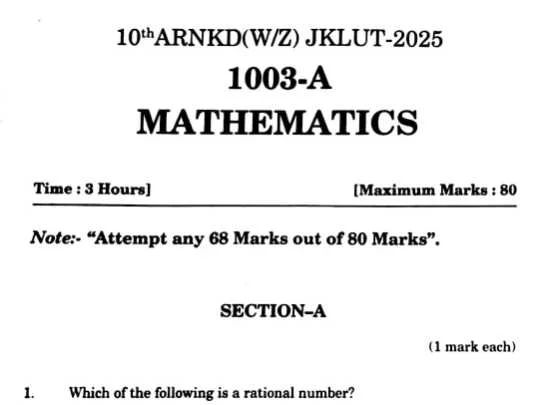 JKBOSE Class 10th Mathematics Paper 2025 (OctoberโNovember Session): PDF Download, Exam Review & Key Insights
